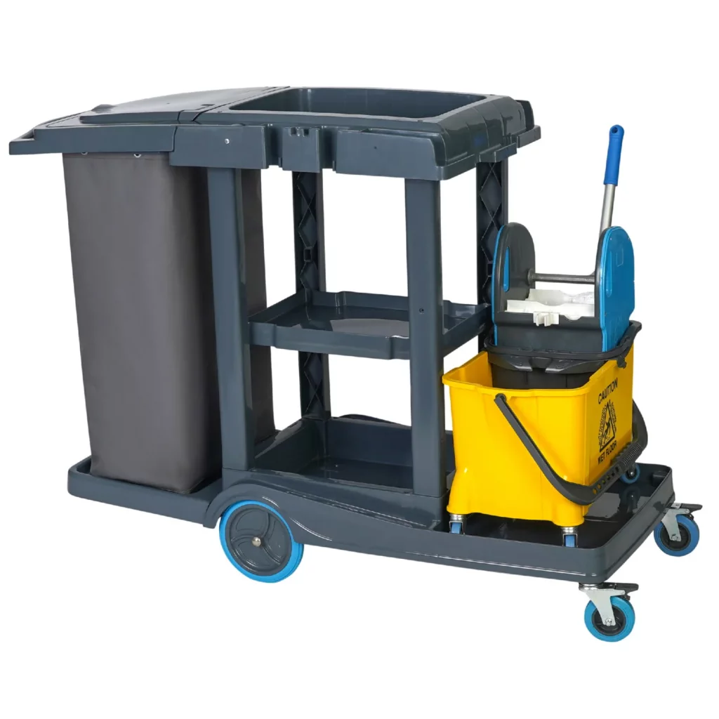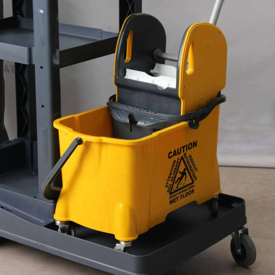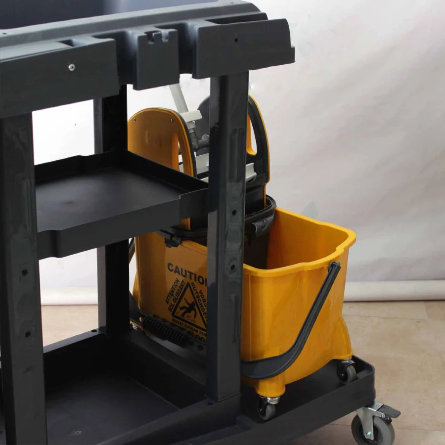 بدنه پلاستیکی مقاوم و سطل برزنتی باکیفیت، دوام محصول را تضمین کرده و آن را به یک سرمایهگذاری بلندمدت برای مجتمع های اداری و تجاری تبدیل میکند. خرید ترولی نظافتی مدل H695 به دلیل طراحی حرفهای، برای استفاده در انواع مکانها از جمله هتلها، بیمارستانها، ادارات، مراکز آموزشی و فروشگاهها ایدهآل است.