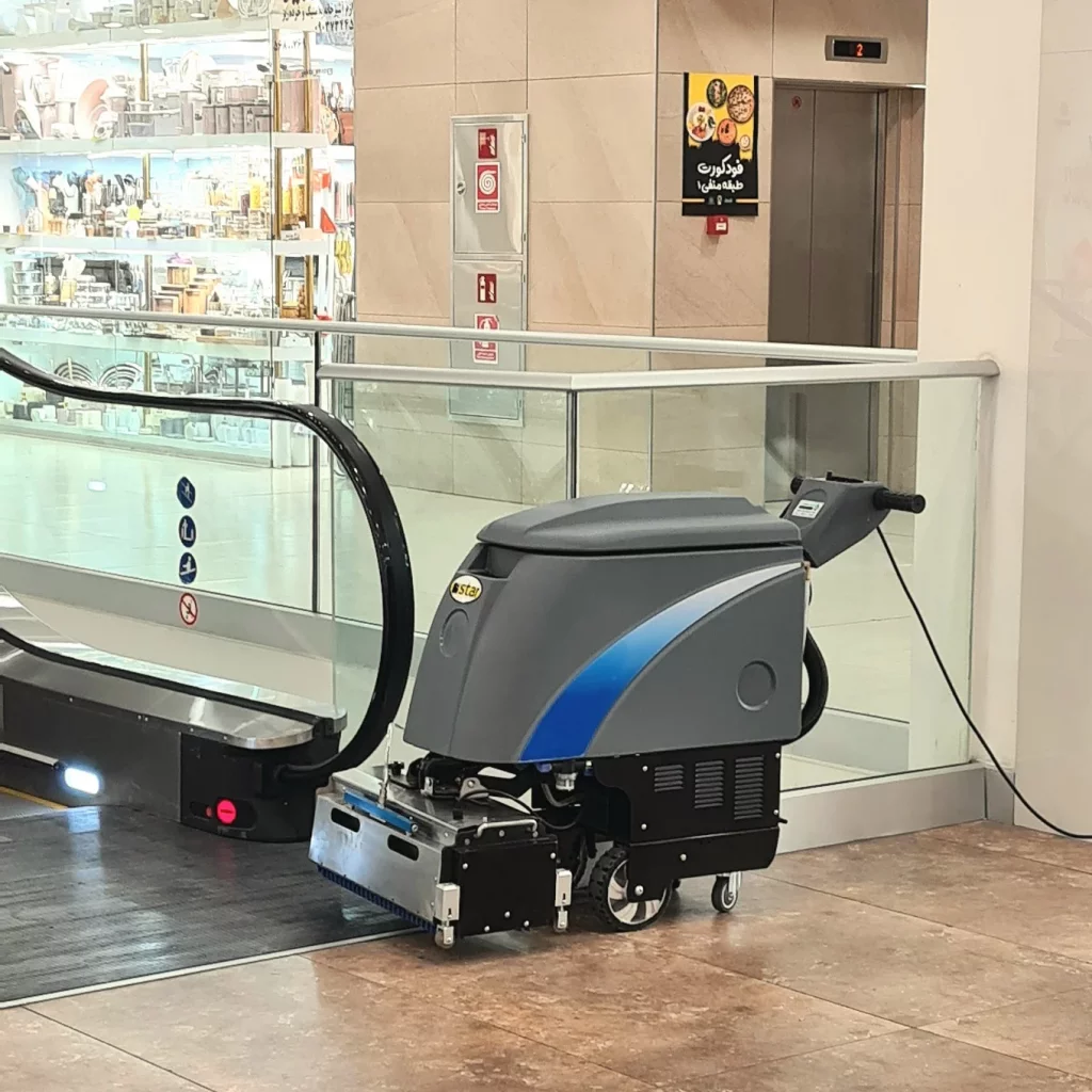 دستگاه شستشوی پله برقی Escalator Cleaner E51، محصولی پیشرفته با طراحی هوشمند بوده و دقیقاً برای نظافت پله برقی در مکان عمومی ساخته شده است. نظافت پله برقی بدون دستگاه با توجه به شیارهای پله بسیار سخت و عمدتا به درستی انجام نمیشود و لابلای شیارها همچنان کثیف میماند. این دستگاه با تمرکز بر کیفیت، برای استفادههای سنگین در محیطهای عمومی طراحی شده و استانداردهای ایمنی را رعایت میکند. محصول Escalator Cleaner E51 بیش از اینکه یک دستگاه ساده باشد، یک سیستم هوشمند برای حفظ بهداشت پلههای برقی است. این طراحی نیاز به حرکت روی پلهها را حذف کرده و تمرکز کاربر را روی تمیزکاری عمیق گذاشته است.