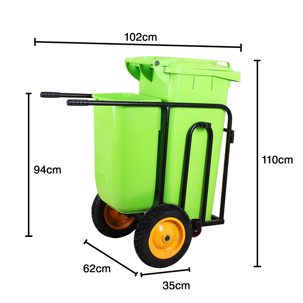 این گاری با ظرفیت 120 لیتر، امکان حمل حجم زیادی از زبالههای تر و خشک را فراهم میکند. این ویژگی آن را به گزینهای ایدهآل برای محیطهای صنعتی، بیمارستانها و مراکز تجاری تبدیل کرده است. در پشت این شاسی نیز یک عدد سطل کوچک 50 لیتری جهت جمع آوری زباله های کوچک و حتی تفکیک زباله قرار داده شده است.