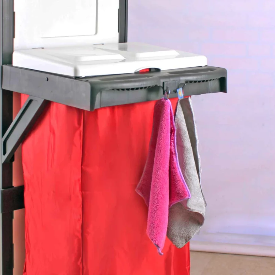 • کشوی قفلدار و گیرههای جانبی برای ابزارآلات نظافت