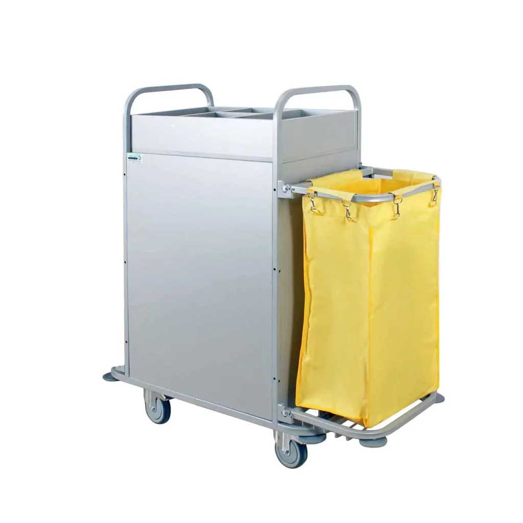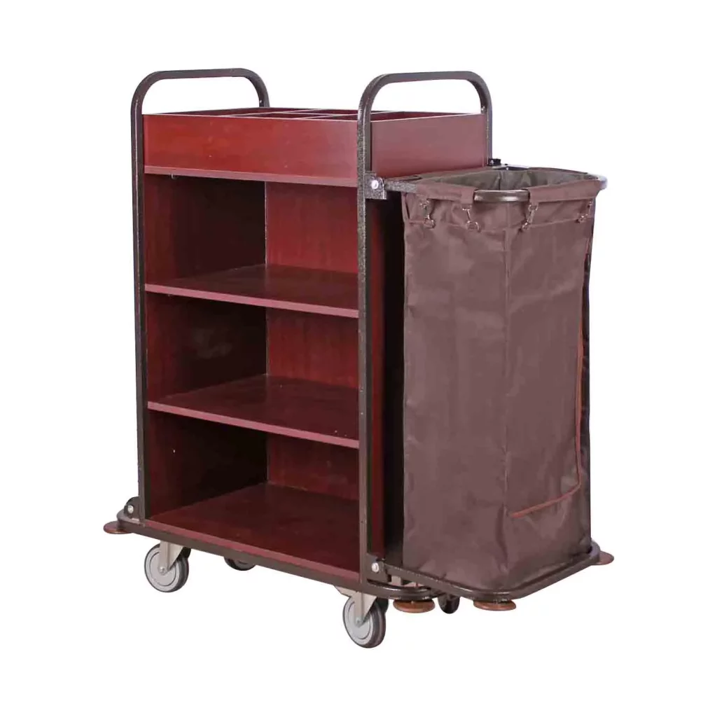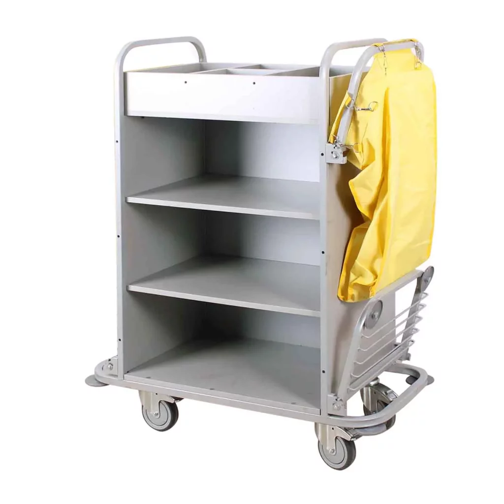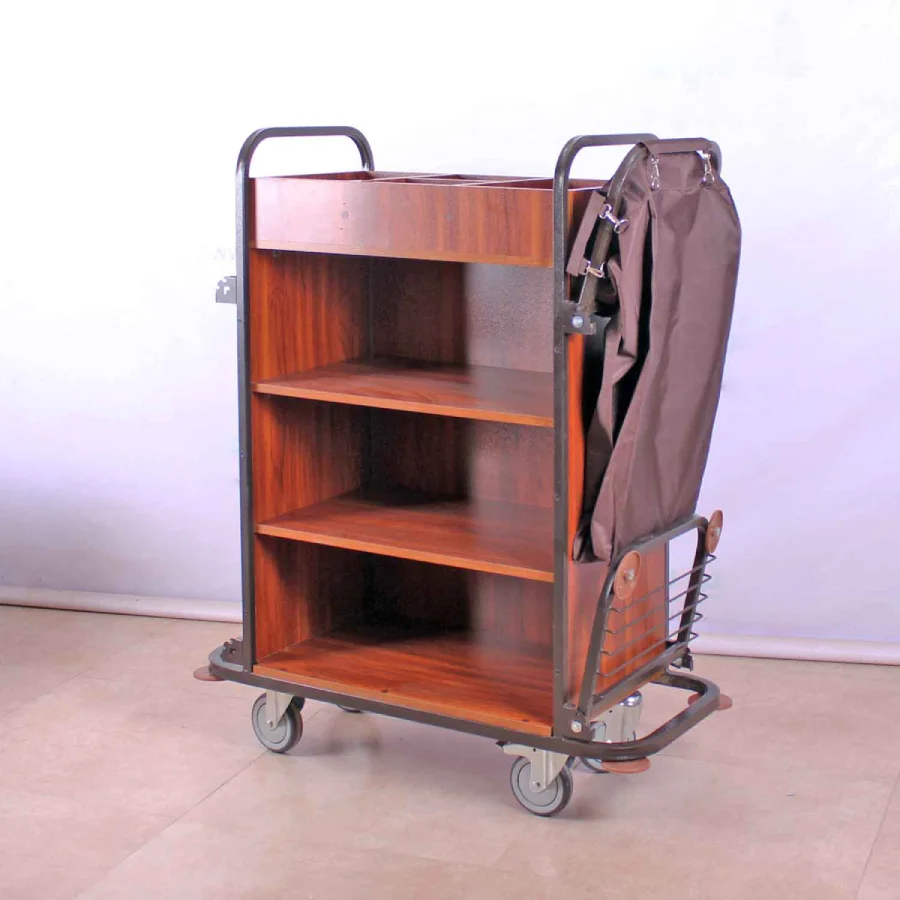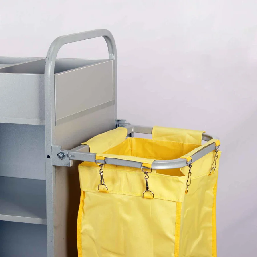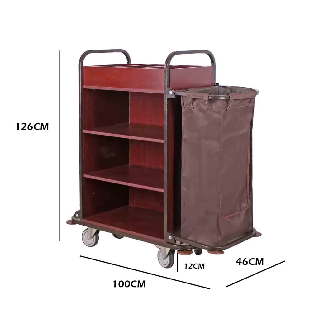 این ترولی به راحتی تا میشود و به شما امکان میدهد تا در زمانهایی که از آن استفاده نمیکنید، آن را در فضاهای کوچک و محدود نگهداری کنید. این ویژگی آن را به یک ابزار ایدهآل برای هتلهای بوتیک، مهمانپذیرها و حتی هتلهای بزرگ که با مشکل کمبود فضا مواجه هستند، تبدیل میکند. علاوه بر این با دسترسی آسان به تمام ابزارهای مورد نیاز، پرسنل شما میتوانند فرآیند نظافت هر اتاق را به شکل چشمگیری سریعتر انجام دهند.