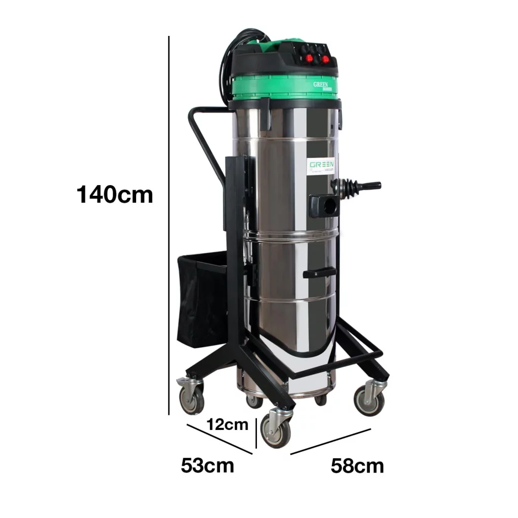 جاروبرقی صنعتی Green Master H973A ساخت کشور ایران از برند Green با سه موتور اتوماتیک Amitec، حجم مخزن ۱۲۰ لیتری و سیستم فیلتر شیکر پیشرفته عرضه می گردد. این محصول گزینهای ایدهآل برای جمعآوری خاک، آب، برادههای فلزی و ضایعات صنعتی است. جاروبرقی صنعتی Green Master H973A با ابعاد کاملاً صنعتی (طول ۵۸ سانتیمتر، عرض ۵۳ سانتیمتر و ارتفاع ۱۴۰ سانتیمتر) طراحی شده تا در فضاهای وسیع کارگاهها و کارخانهها به راحتی مورد استفاده قرار گیرد. بدنه از استیل و گالوانیزه مقاوم در برابر خوردگی و ضربه ساخته شده و شاسی فلزی با رنگ کورهای استحکام طولانیمدت را تضمین میکند. کلگی پلی اتیلن فشرده بدون خطر برقگرفتگی، ایمنی کاربران را اولویت قرار میدهد. علاوه بر این از دیگر ویژگی های خرید جاروبرقی صنعتی گرین H973A می توان به موارد زیر اشاره نمود.