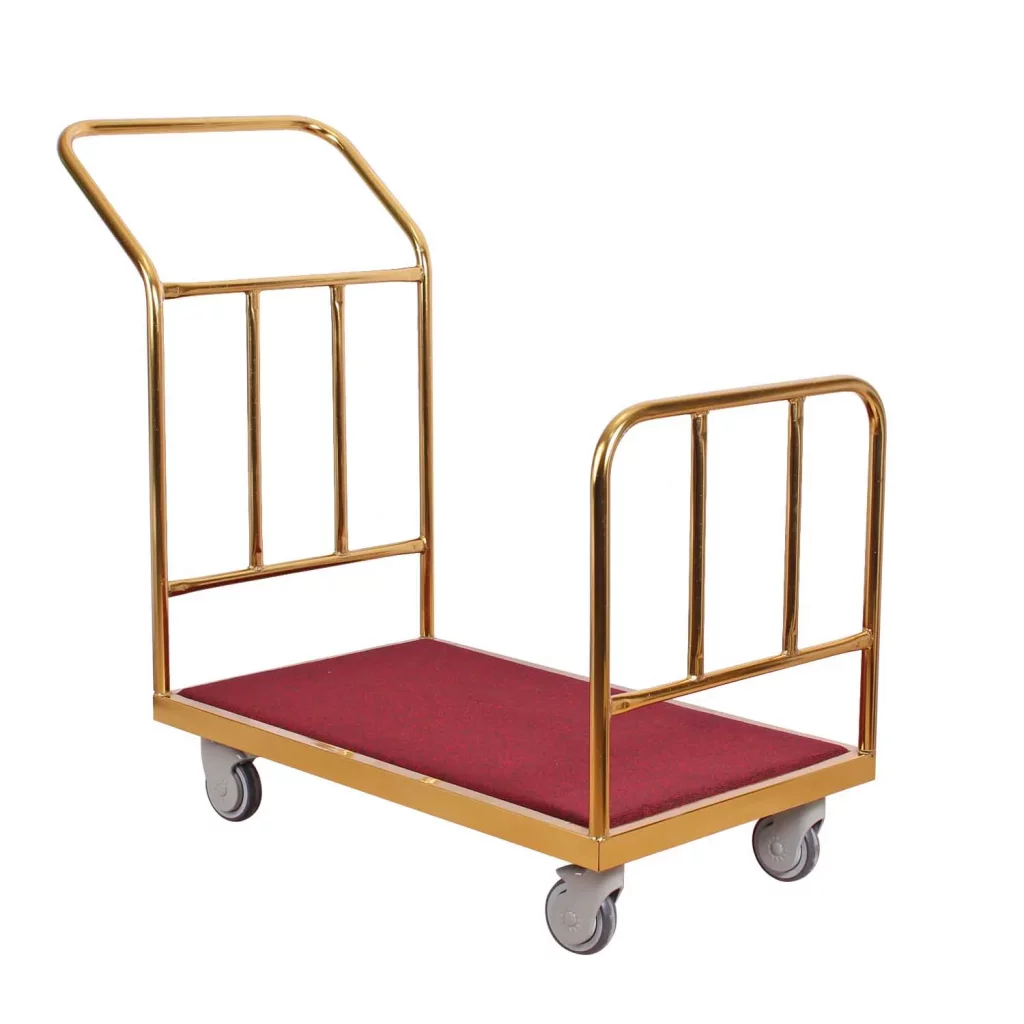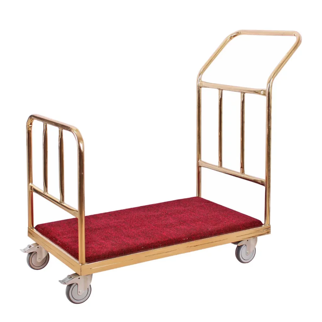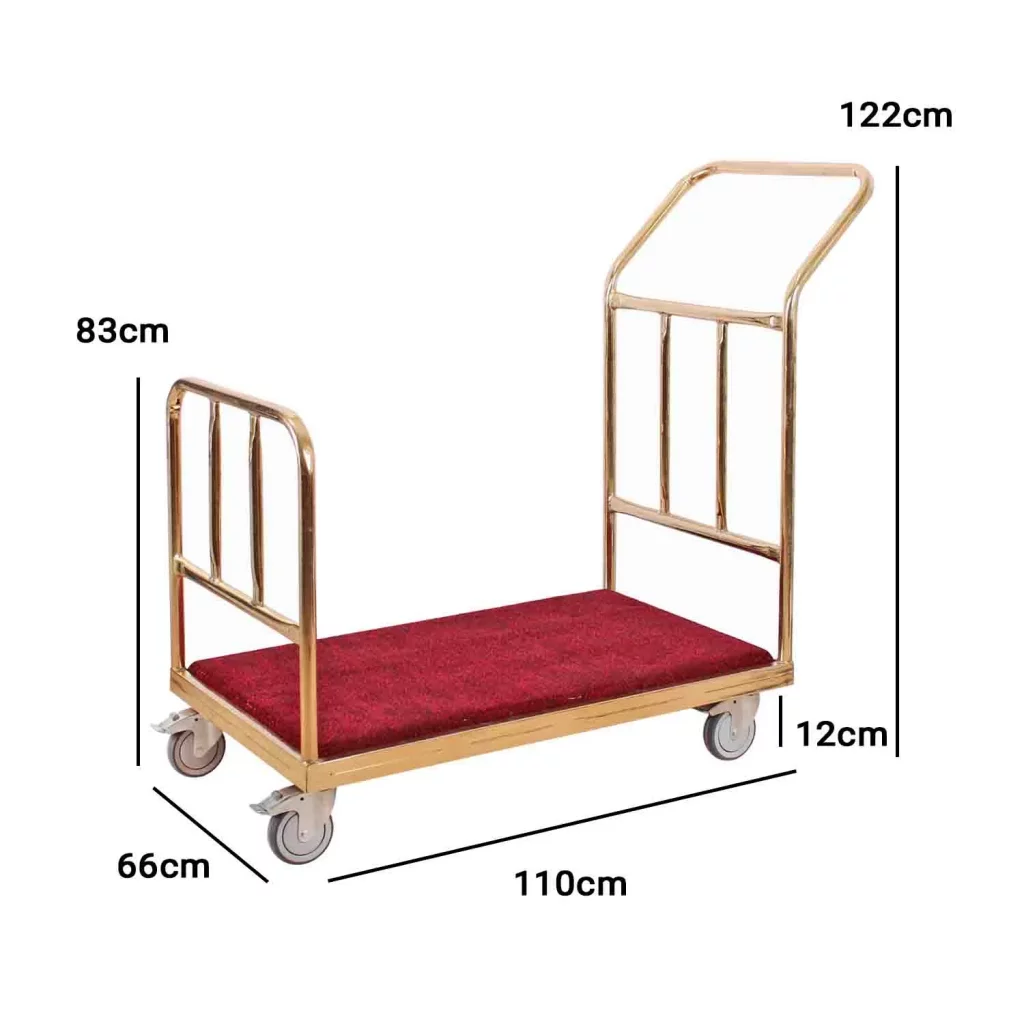 خرید ترالی حمل چمدان مدل 6300 یکی از محصولات پرکاربرد و گزینهای ایدهآل برای جابجایی چمدانها و وسایل مسافران در هتلها، مسافرخانهها و حتی فرودگاهها محسوب میشود. این ترالی با بدنهای از جنس فلز آبکاری شده، نهتنها دوام و استحکام بالایی دارد، بلکه با ظاهری شیک و حرفهای، به دکوراسیون محیط شما جلوهای خاص میبخشد. طراحی ارگونومیک و ویژگیهای برجسته آن، مانند چرخهای روان و کفی موکتشده، باعث شده است که این محصول به یکی از محبوبترین گزینهها در بازار تجهیزات هتلی تبدیل شود.
