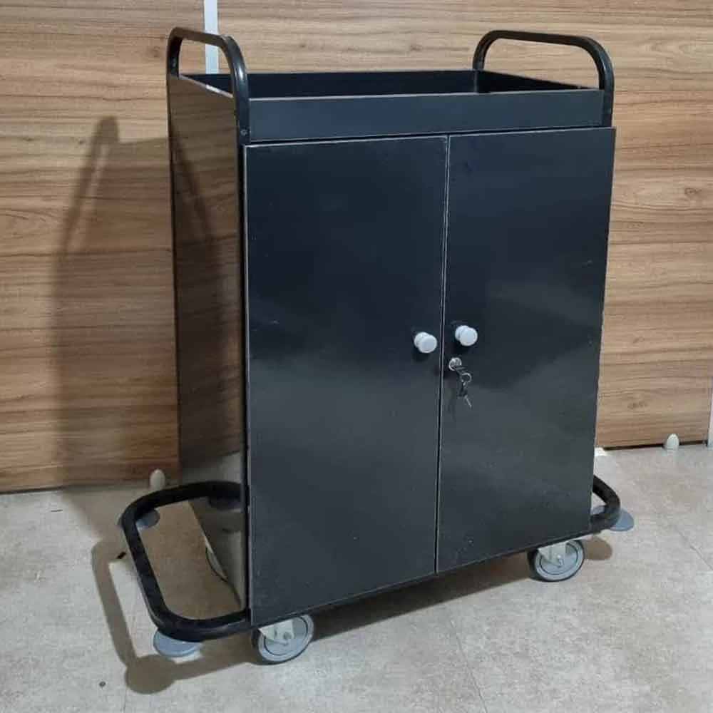 با طراحی ارگونومیک و ابعاد استاندارد، این ترولی به راحتی از راهروهای باریک عبور کرده و در فضاهای کوچک نیز قابل استفاده است. قابلیت مانور بالای آن باعث میشود پرسنل به راحتی به گوشهها و زوایای مختلف دسترسی پیدا کنند.