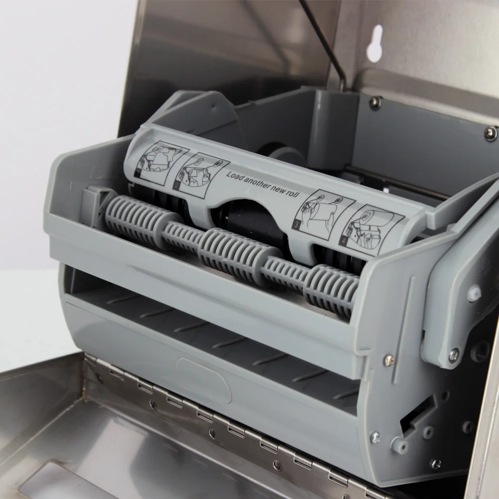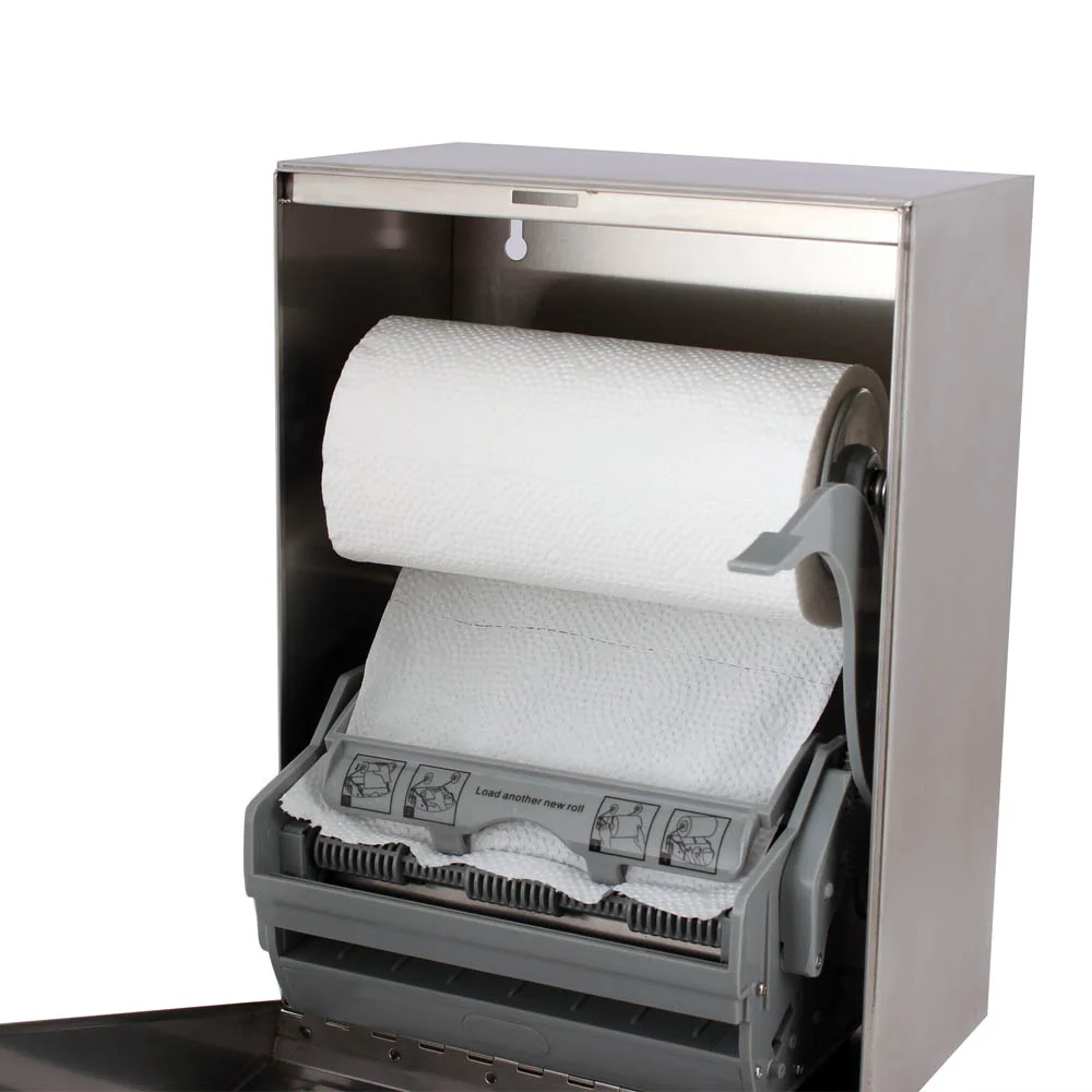 این مخزن دستمال کاغذی به صورت دستی و از طریق اهرمی که روی بدنه تعبیه شده است، مورد استفاده قرار می گیرد. این سیستم عملکردی به کاربر اجازه میدهد تا با یک فشار ساده، مقدار مورد نظر دستمال کاغذی را مورد استفاده قرار دهد. این ویژگی مهم باعث صرفه جویی در مصرف دستمال کاغذی خواهد شد.