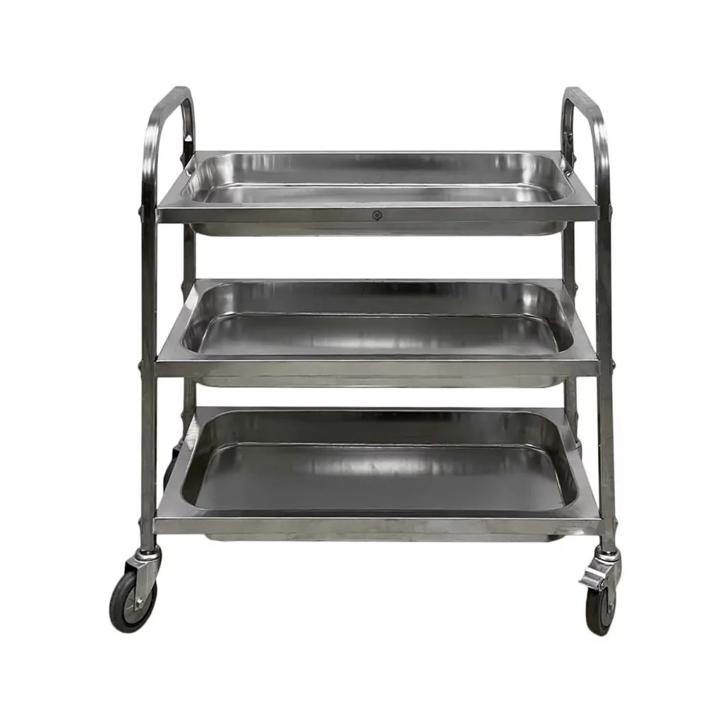 ترولی تمام استیل سه طبقه گود مدل 613 با طراحی منحصر بفرد، یک انتخاب ایدهآل برای جابجایی لوازم و تجهیزات در رستوران ها، بیمارستانها، کلینیکها، آزمایشگاهها، داروخانهها و حتی آشپزخانههای صنعتی است. این محصول با ترکیب مقاومت بالا و طراحی هوشمندانه، فرآیند حملونقل را به شکل چشم گیری تسهیل میبخشد. در محیطهایی مانند بیمارستانها، آزمایشگاهها و آشپزخانههای صنعتی که بهداشت و کارایی تجهیزات از اهمیت بالایی برخوردار است، ترولی تمام استیل سهطبقه گود مدل 613 به عنوان یک ابزار حیاتی شناخته میشود.