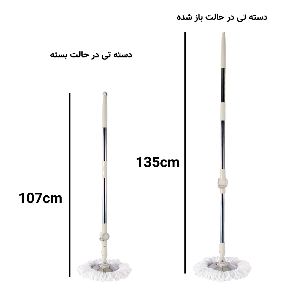 کیفیت ساخت تی چرخشی پدالدار L200 بینظیر است؛ بدنه از پلاستیک پلیاتیلن درجهیک با مقاومت بالا ساخته شده و سبد خشککن از استیل ضدزنگ واقعی بهره میبرد که سالها بدون زنگزدگی یا تغییر شکل کار میکند. طراحی ارگونومیک آن، استفاده را لذتبخش کرده است. دسته استیل قابل تنظیم (از ۹۵ تا ۱۳۶ سانتیمتر) به همراه مفصل خمشونده ۹۰ درجه، دسترسی به زیر مبل، تخت یا میز را آسان میکند. چرخهای کوچک بلبرینگدار و دسته حمل، جابجایی سطل ۲۵ لیتری را حتی برای افراد مسن یا بانوان ساده میسازد.