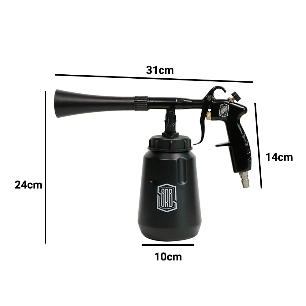 TornadoGun SBR با طراحی سنگین وزن و بادوام، برای استفاده مداوم ساخته شده است. این مشخصات، تورنادوگان SBR را به یک ابزار همهکاره برای دیتیلینگ تبدیل کرده که با فشار هوای استاندارد، عملکردی بینقص ارائه میدهد. این محصول یک سیستم هوشمند تمیزکاری است که با ترکیب هوای فشرده و شوینده، سطوح را بدون تماس فیزیکی پاک میکند. بر روی تفنگی تورنادوگان مخصوص صفرشویی داخل خودرو اس آر بی یک عدد سوپاپ تنظیم باد وجود دارد که در صورت نیاز می توانید از آن استفاده نمایید. همچنین با استفاده از پیچ تعبیه شده در قسمت بالایی درپوش مخزن، مقدار مورد نیاز حجم مواد شوینده را تعیین نمایید. در بسته بندی تورنادوگان مخصوص صفرشویی یک عدد ظرف مدرج نیز تعبیه شده است تا بتوانید به میزان مورد نیاز مواد شوینده را با آب ترکیب نمایید.