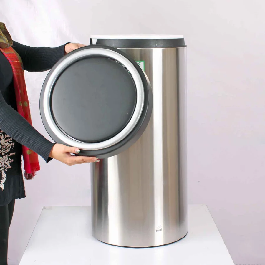 خرید سطل زباله بادبزنی 45 لیتری مدل BZ-50 اداری جهت مراکز عمومی با رفت و آمد و تولید زباله بالا مناسب می باشد. سطل زباله بادبزنی 45 لیتری مدل BZ-50 از کیفیت فوق العاده ای برخوردار بوده و بزرگترین حجم را در میان سطل های زباله اداری به خود اختصاص می دهد. درب بادبزنی این محصول امکان ریختن زباله به درون سطل بدون تماس دست را امکان پذیر می نماید. پس از ریختن زباله نیز بازگشت صفحه متحرک درب به حالت اولیه و عدم مشاهده محتویات داخل سطل فراهم می باشد. بدنه این سطل زباله از استیل ۳۰۴ ضد زنگ تولید گردیده که در برابر ضربه و فشار از مقاومت بالایی برخوردار است.