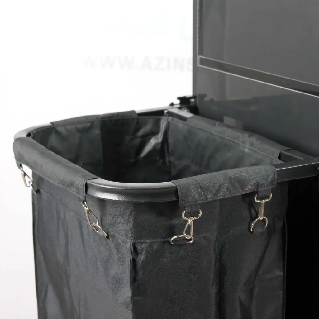 ترولی هتلی مدل 9406 دارای دو عدد بین برزنتی با حجم حدودی 80 لیتر می باشد که به کمک آن می توان حجم زیادی از ملحفه و حوله را جمع آوری کند. قسمت نگهدارنده برزنت این محصول قابلیت جمع شدن داشته و برای نگهداری در انبار و یا جابجایی آسان در آسانسور می توان ترالی را کوچک تر نمود. در محیطهایی مانند هتلها، بیمارستانها و مجتمعها برای خدمات رسانی آسانتر استفاده از ترالی هتلی مدل 9406 رایج بوده و در مدت زمان کوتاه می توان خدمت رسانی را انجام داد.