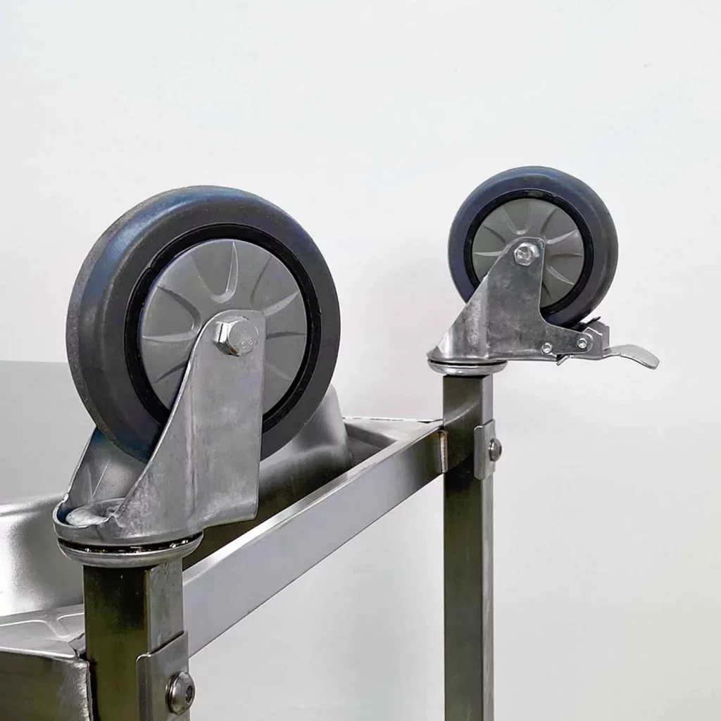 این محصول از 4 عدد چرخ بلبرینگی روان، بدون صدا و لرزش و کاملاً مقاوم بهره مند می باشد. از این رو حرکت روان و بدون صدایی را بخصوص در مکان هایی مانند بیمارستان ها، درمانگاه ها و مراکز پزشکی به ارمغان می آورد.